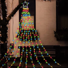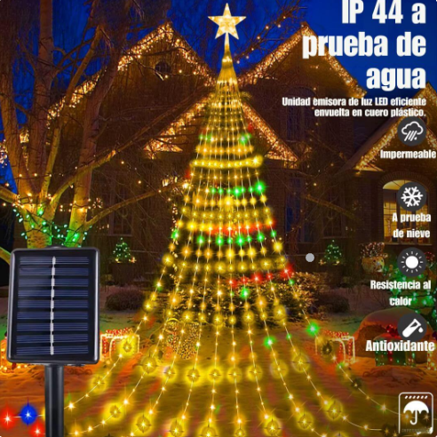 🎄 Diseño innovador: estrella brillante con caída de luces en cascada.